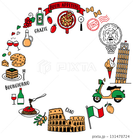 シンプルでかわいいイタリアにまつわるイラストセット(イタリア トリコローレ)