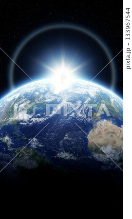 深宇宙に輝く地球 青く光る惑星のビジュアルアート