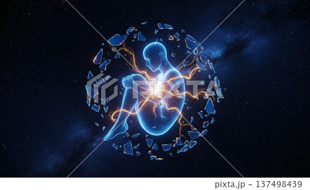 宇宙空間に浮かぶ光の胎児と生命エネルギーの誕生イメージ