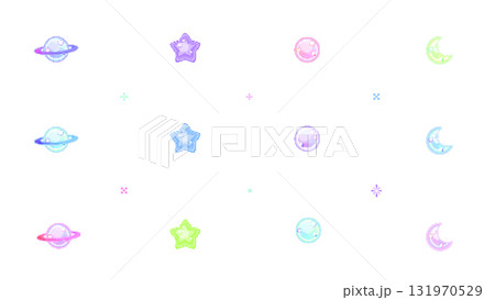 8bitレトロゲーム風惑星星月のかわいいイラスト背景透過