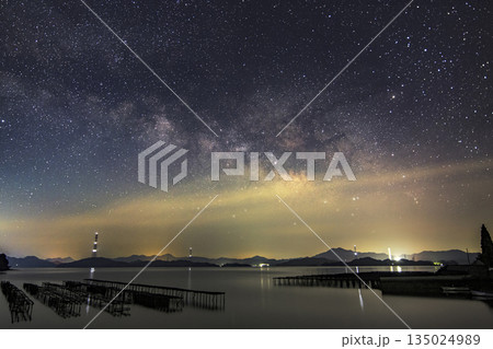 春の星景色 多島美の空の天の川銀河