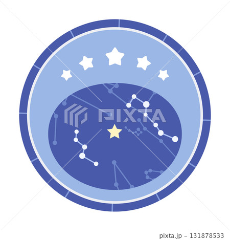 北極星と北斗七星とカシオペヤ座の位置をデフォルメしたイラスト