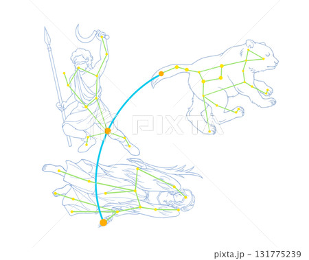 おおぐま座・オリオン座・夏の大三角の星座イラスト