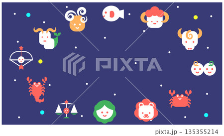 かわいいカラフルな星座のアイコンセット 牡羊座牡牛座双子座蟹座獅子座乙女座天秤座さそり座射手座山羊座