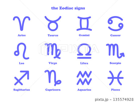 黄道12星座のマーク (色)#6666ff 英語の星座名