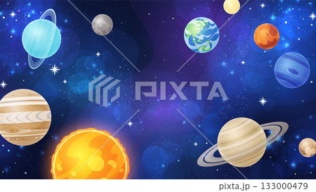 宇宙に浮かぶカラフルな惑星の背景素材01
