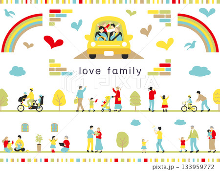 シンプルイラスト クレヨンタッチ 車でお出かけ