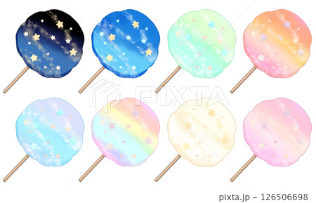 クレヨンタッチで描かれた手描き風カラフル空模様アイコンとイラスト素材集