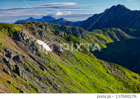 北アルプス・双六岳稜線から見る三俣蓮華岳と立山・赤牛岳