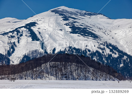 残雪期の尾瀬ヶ原から見る牛首と至仏山