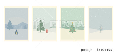 クリスマスツリーと雪が積もる夜の街並み背景素材 横位置