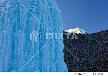 【北アルプス素材】冬の安曇野市内から見る朝焼けに染まる北アルプス【長野県】