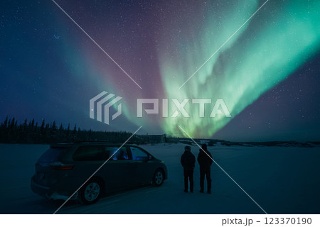 オーロラ鑑賞、写真家、私たち、自然の中で、オーロラがダンスをする