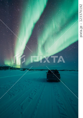 オーロラの世界を感じながら、オーロラ鑑賞、神秘的な景色が降り注ぐ瞬間、夜、トロムソ、