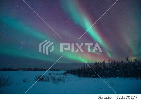 カナダ イエローナイフ オーロラビレッジからのオーロラ風景