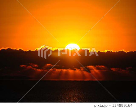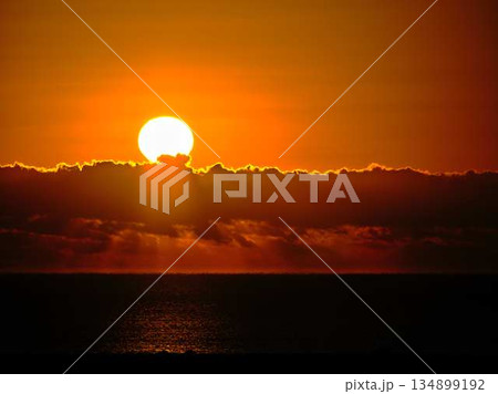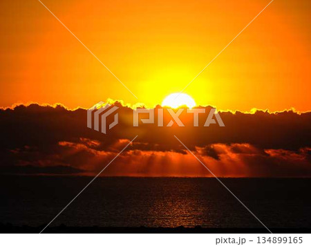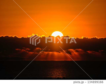 沖縄の沈む夕陽とシルエット