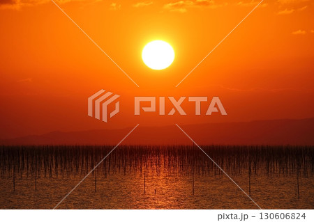 大牟田市 有明海 海苔畑 元旦の夕暮れ、