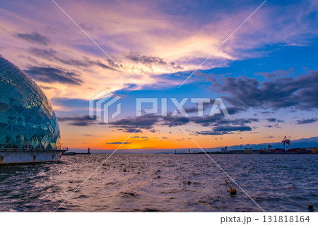 【静岡県】夕暮れの沼津港と駿河湾の夕陽