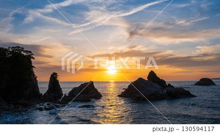 佐渡島に沈む日本海の夕日(新潟・角田浜海岸)