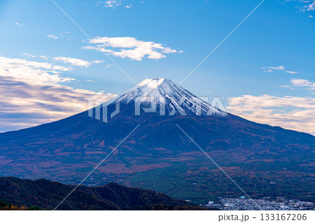 【山梨県】紅葉が美しい三ツ峠山から望む富士山 早朝