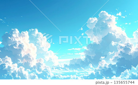 夏の青空に浮かぶ白い入道雲と爽やかな空の風景