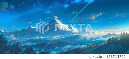 真夜中の山の風景、アニメ風