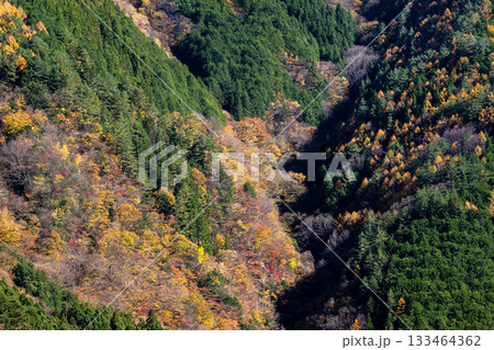 栃木県那須町茶臼岳から見下ろす、ひょうたん池と紅葉