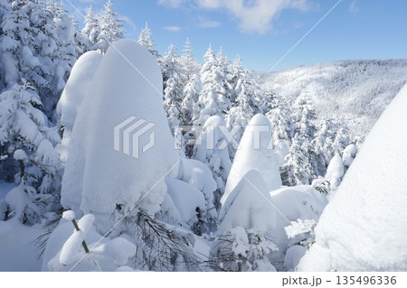 厳冬期の八ヶ岳(北横岳に向かう登山道にある霧氷に覆われた岩)