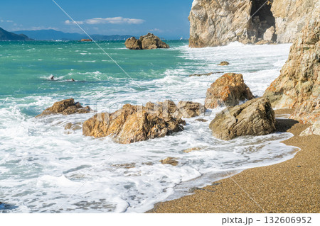 冬の海 打ち寄せる波 《三重県 熊野灘 七里御浜》