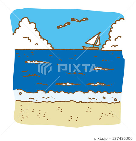 砂浜と海面・波・揺らぎの背景イラスト素材