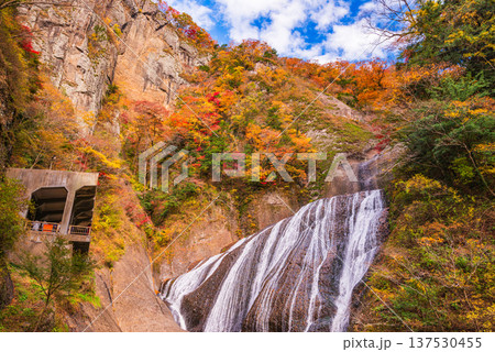 (茨城県)紅葉最盛期の袋田の滝