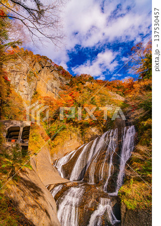 栃木県日光市中宮祠 奥日光の渓流瀑の竜頭の滝 観瀑台から紅葉の景色