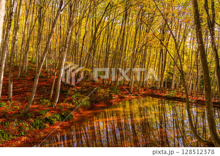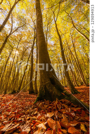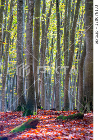 【森林素材】秋の美人林・紅葉したブナの森【新潟県】