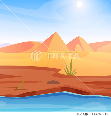 Game Background Banner Template, Desert Natural Landscape for Mobile or Computer Game User Interface Vector Illustration