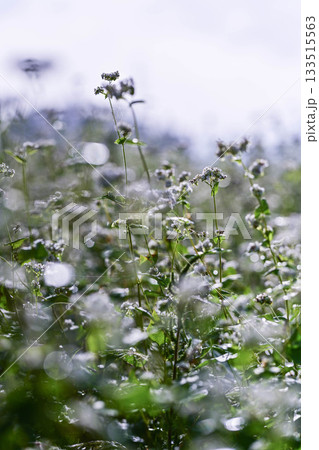 長野県上伊那郡箕輪町に広がる赤そばの里と満開の花畑風景