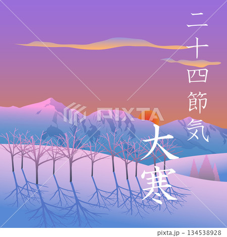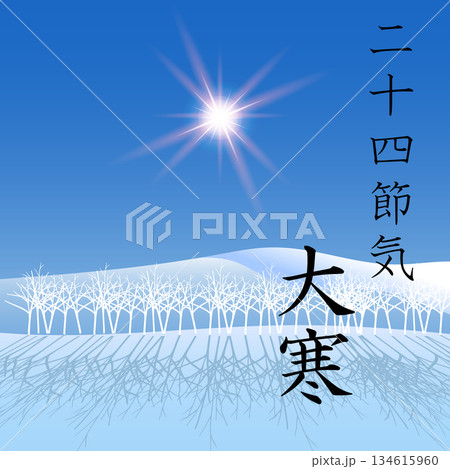 冬の澄んだ空と雪原のベクターイラスト(A3タテ)
