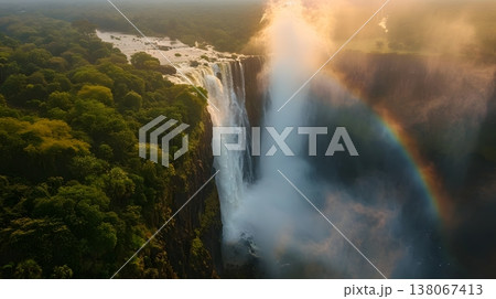 巨大な滝にかかる美しい虹 希望を表す絶景