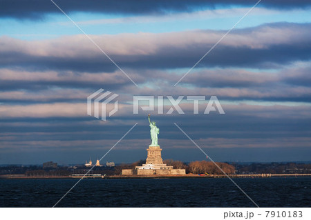 USA, New York City, Staten Island, Harbor and silhouette of Statue of Liberty in background