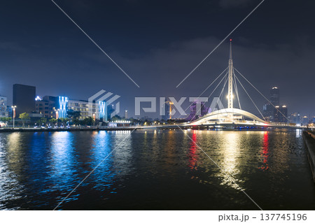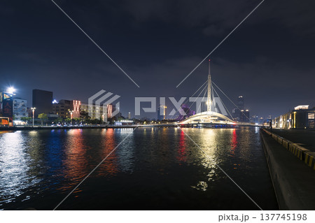 台湾・高雄 ライトアップされた大港橋 夜景 / Kaohsiung, Taiwan
