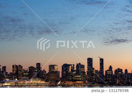 黄昏時のバンクーバー|美しい空|ビルのシルエット