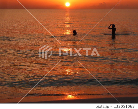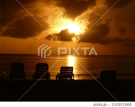 Beautiful tropical beach with palm trees. Sunrises and sunsets. Ocean.