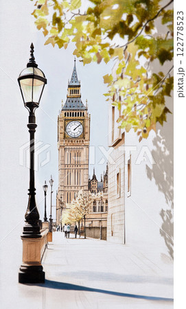 ロンドン名物の幻想的な点描風イラスト