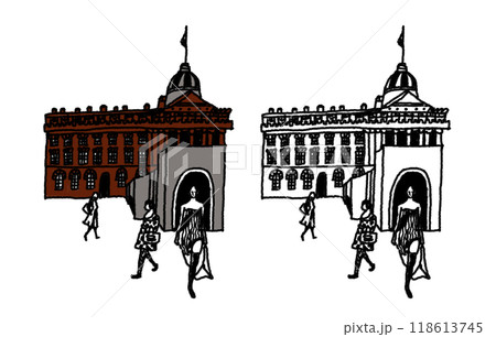 切手風ロンドン名所の白黒イラスト