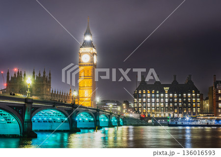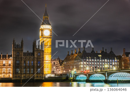 ロンドン 夜のテムズ川とエリザベス・タワー(ビッグ・ベン)