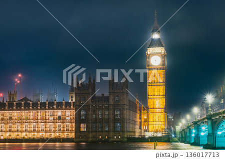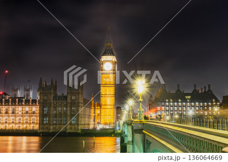 ロンドン ライトアップされたエリザベス・タワー(ビッグ・ベン)