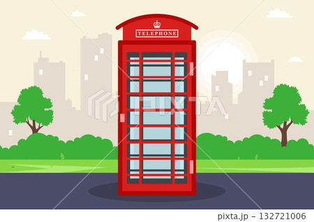 Traditional red London Telephone Booth. Vector illustration isolated on white background, hand drawn, flat design