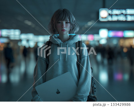 サイバーパンクな大都市のネオンナイト:雨上がりの街角