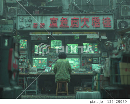 ゲーム背景 九龍城塞的なスラム街ビルの廃墟室内風景