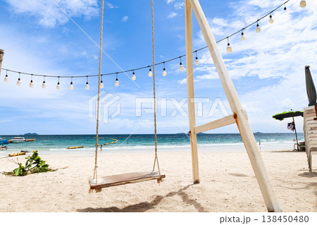 青空の広がるビーチとブランコ