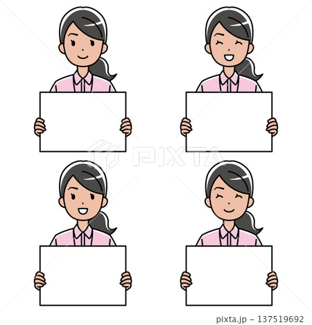 フリップを持つポロシャツの外国人女性のイラスト(カラー)